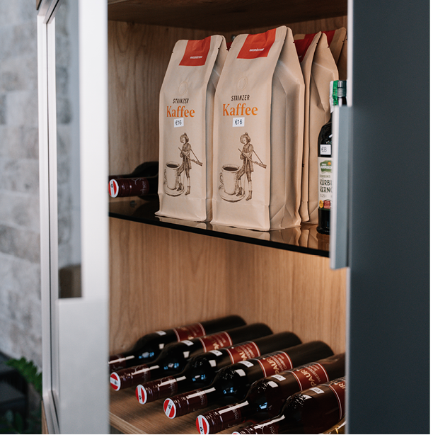 Ein Schrank voller regionaler Köstlichkeiten wartet auf Sie. Wählen Sie Ihre Favoriten aus, hinterlassen Sie den Betrag in der Kasse und genießen Sie die steirischen Spezialitäten!